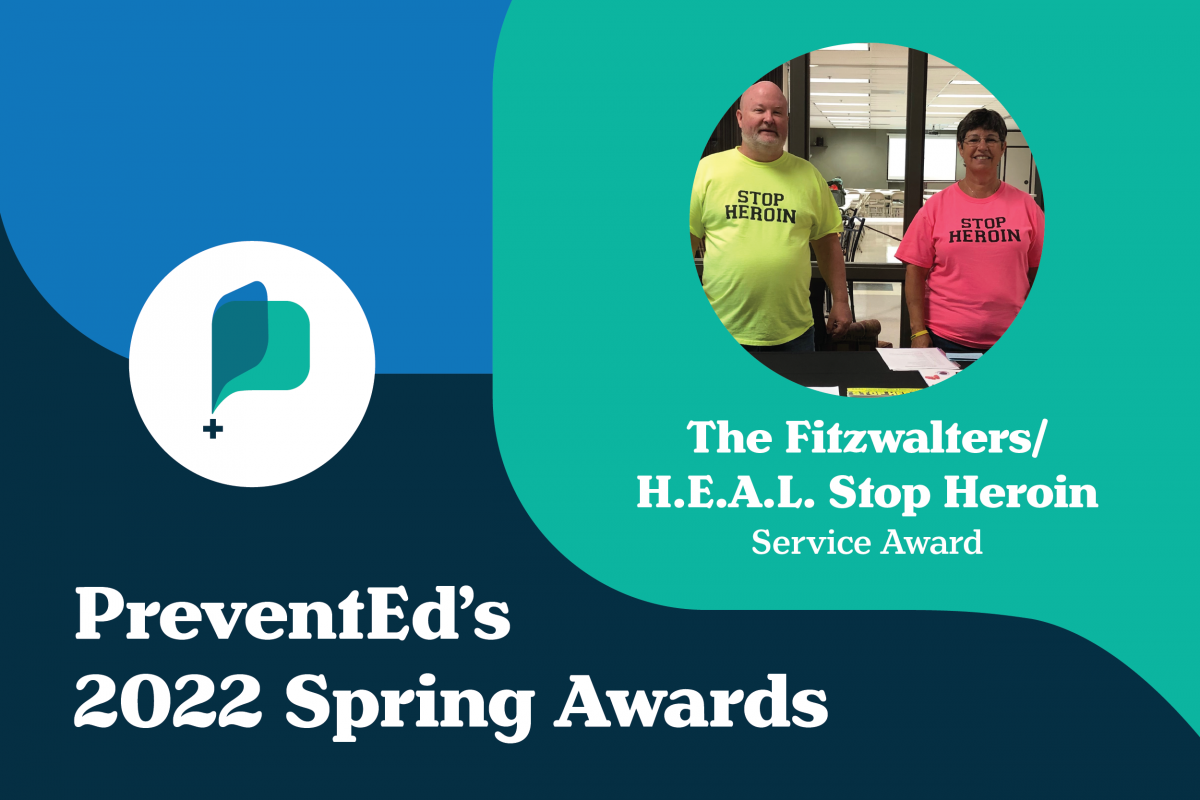 PreventEd is honored to present the 2022 Service Award to The Fitzwalters/H.E.A.L. Stop Heroin in appreciation of remarkable and selfless efforts in addressing substance use in their community.